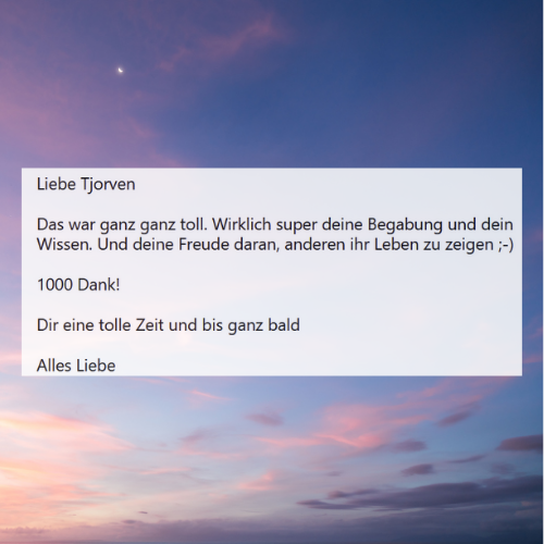 Schreib mir eine Mail oder eine private Nachricht auf Instagram!